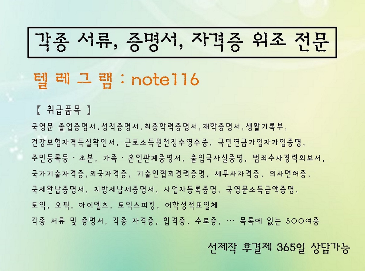 재직증명서위조제작▲텔레note116▲⭐⭐